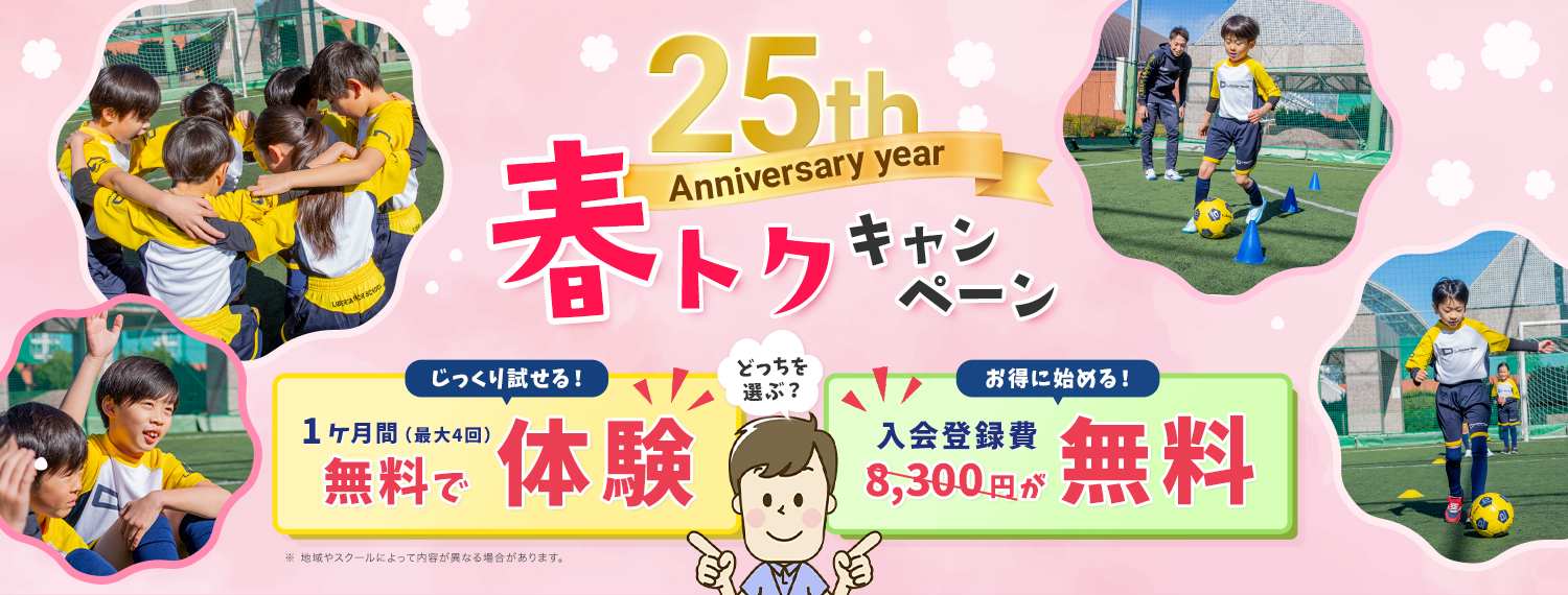 そんな想いをお持ちの保護者様に向けて、リベルタサッカースクールでは、お子様のスポーツデビューを全力でサポートする「春トクキャンペーン」を実施いたします!